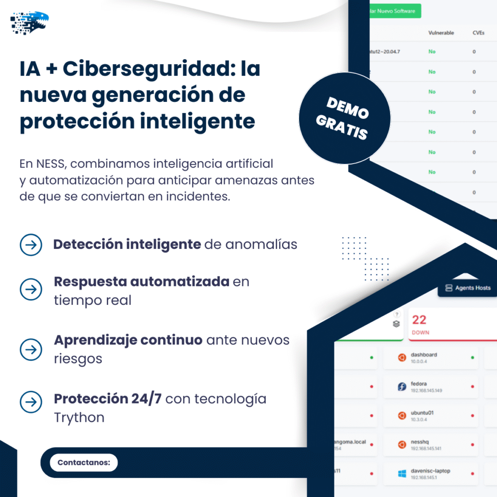 En NESS creemos que la unión de IA y ciberseguridad representa una evolución necesaria para enfrentar los desafíos digitales actuales. Nuestro enfoque integra monitoreo en tiempo real, análisis inteligente y respuesta automatizada para garantizar una protección sólida, escalable y siempre activa.