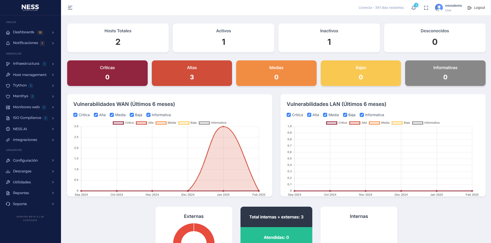 NESS (Network Environment Scanning and Security) es una plataforma desarrollada para el monitoreo de infraestructura tecnológica. Utiliza inteligencia artificial para predecir y notificar fallos antes de que ocurran, ofreciendo una interfaz intuitiva y personalizable que se adapta a las necesidades específicas de cada cliente.